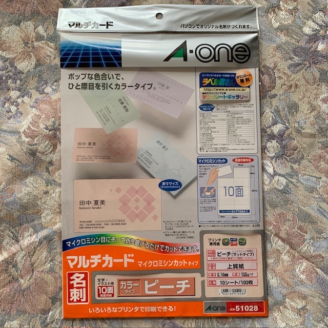 エーワン マルチカード 名刺 60枚(10面×6シート】 ホワイトリネン ☆未使