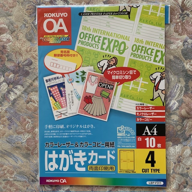 KOKUYO コクヨ カラーレーザー用 はがきカード 40枚(4面×10シート】