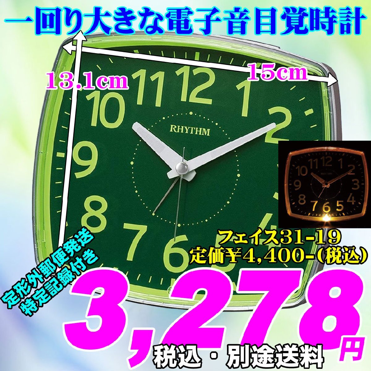 新品 即決 一回り大きな電子音目覚時計 フェイス31-19(緑色文字盤) 8RE