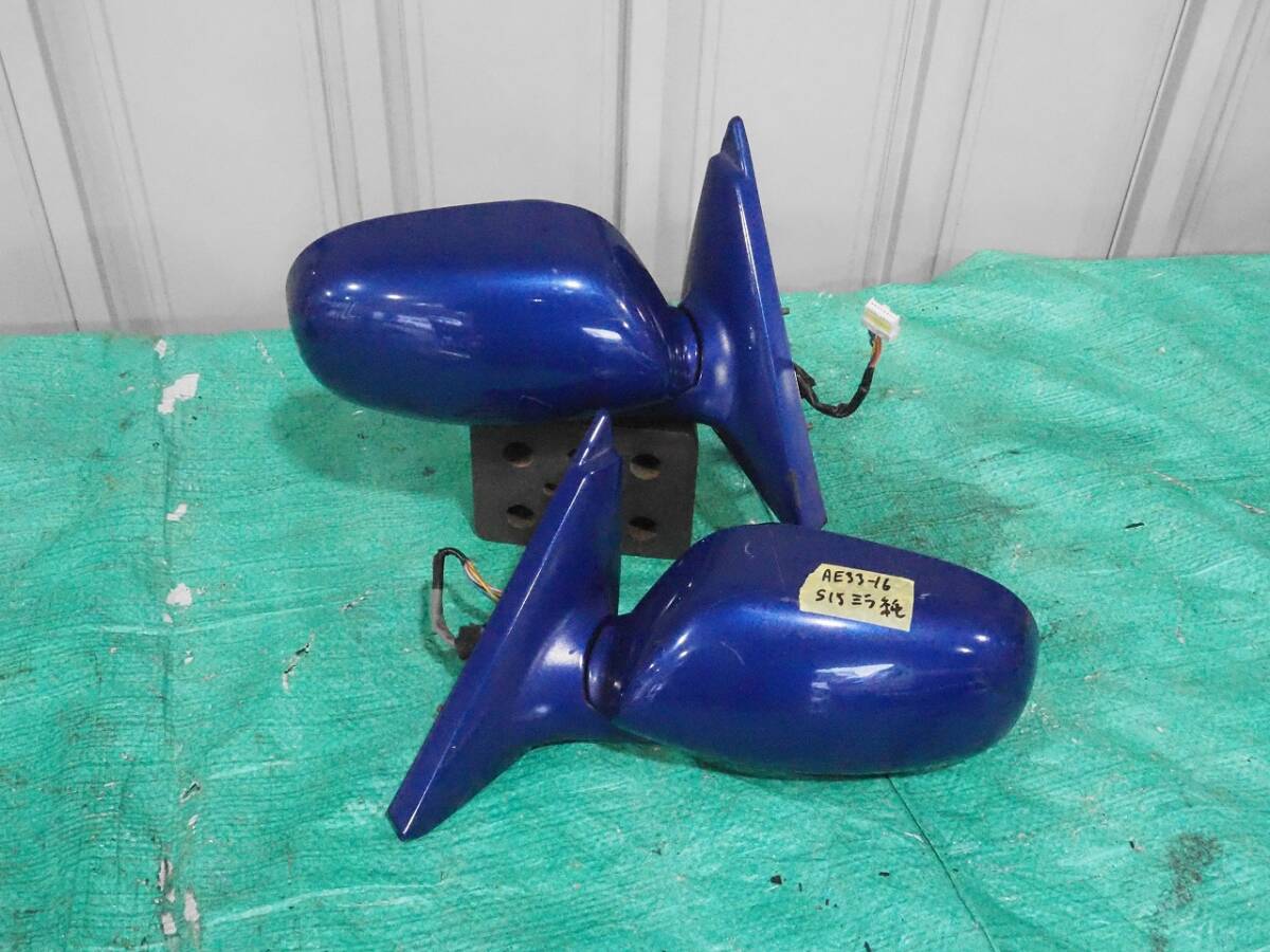 S15シルビア 左右セット★ 純正ブルー ドアミラー サイドミラー AE33-1