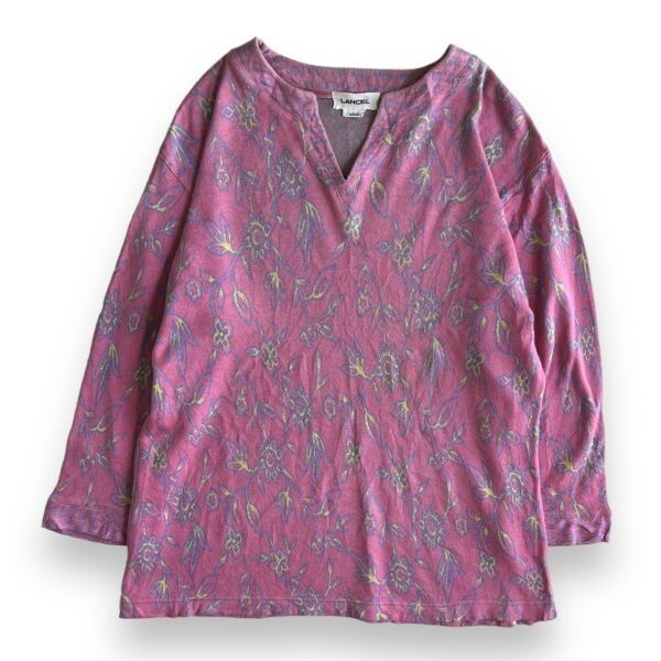 90s~00s LANCEL ランセル 七分丈 キーネック 総柄 Tシャツ 花柄