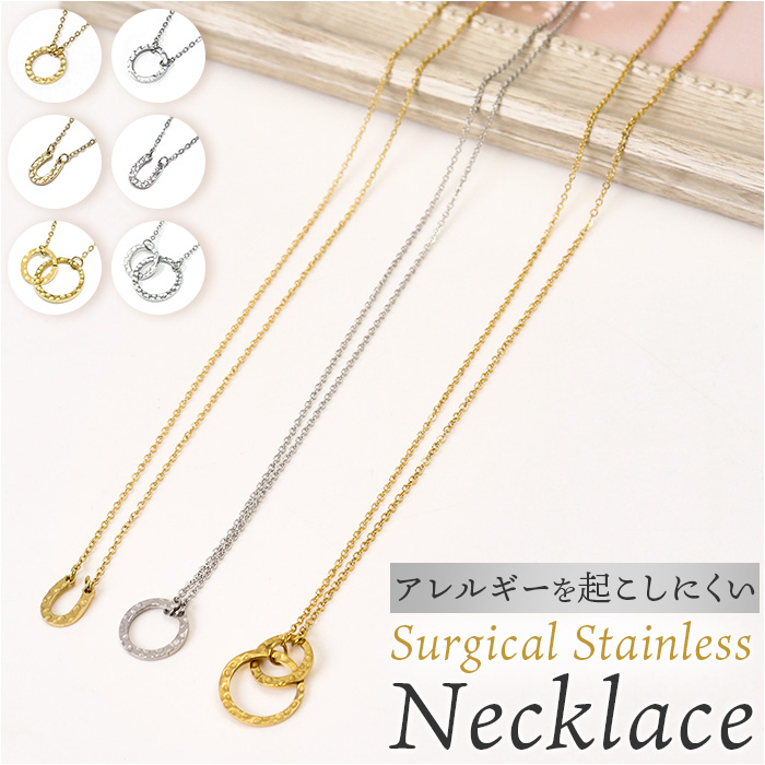 ☆ 011.ゴールド ☆ サージカルステンレスネックレス ネックレス サージカルステンレス ジュエリー ステンレス アクセサリー 槌目 きれいめ 收藏