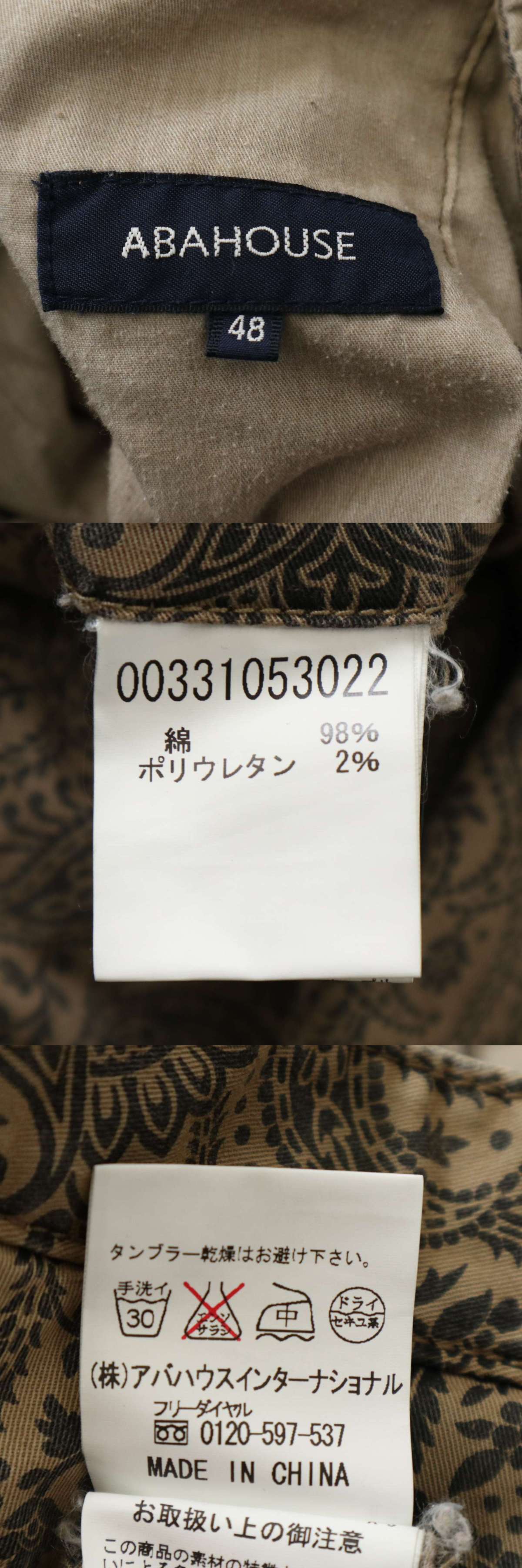 ABAHOUSE アバハウス 通年 ストレッチ★ ペイズリー 総柄 テーパード チノ パンツ チノパン Sz.48 メンズ 收藏