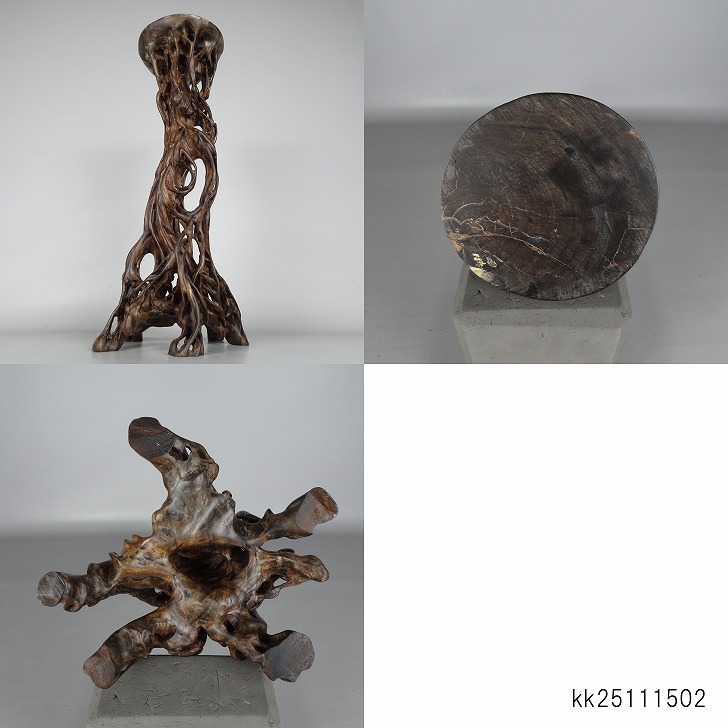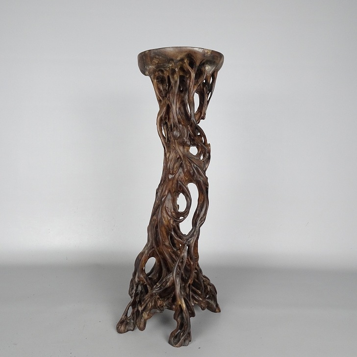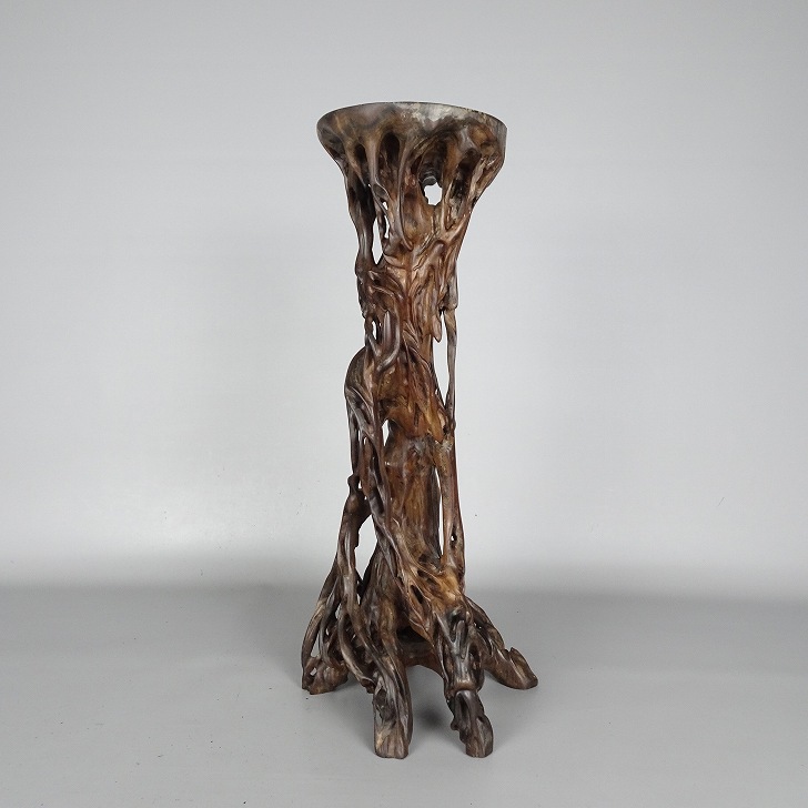 【中古】花台 根卓 高さ 約 40.7cm 飾台 置き物台 花飾 木製 小品卓 盆栽台 現品 中古 收藏