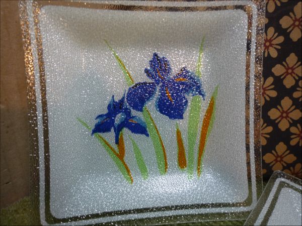 | ★ガラス製 レトロ 花柄の皿 5枚 14㎝真四角(80.62) |