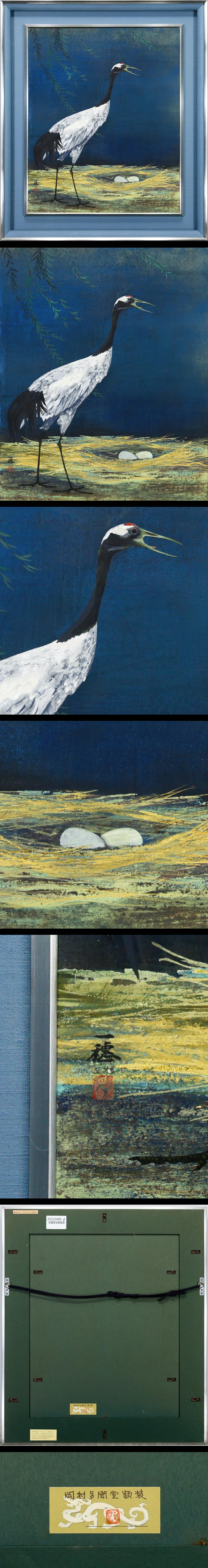 【真作】【WISH】稗田一穂 日本画 10号大 ◆巣と卵を見守る、凛とした姿の鶴 〇文化功労者 東京藝術大学名誉教授 物故巨匠 #25122489 收藏