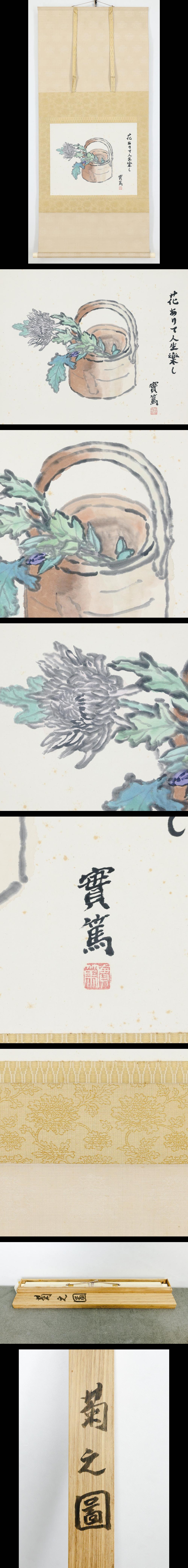 【真作】【WISH】武者小路実篤「菊之圖-花ありて人生樂し」日本画 掛軸 共箱 ◆言葉と絵が響き合う名幅 〇文化勲章 #25120007 收藏