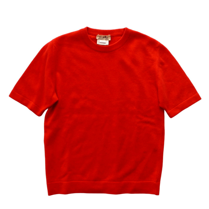 | エルメス(HERMES) カシミア クルーネック ニット セーター 半袖 SMALL ポップレッド ウェア(中古) |