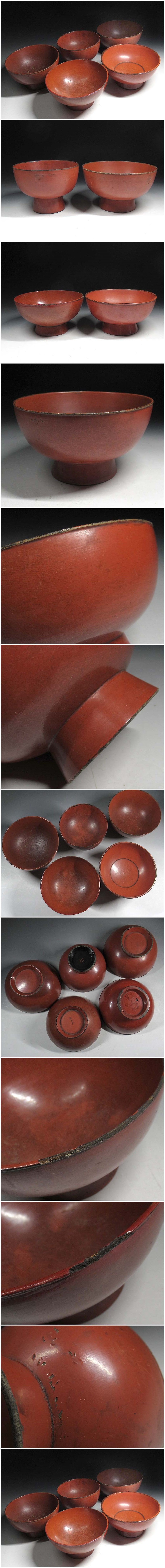 緑屋s■ 時代物 根来塗 高台椀 5点 朱塗 漆書銘 仏教美術 i9/12-6425/22-3#80 收藏