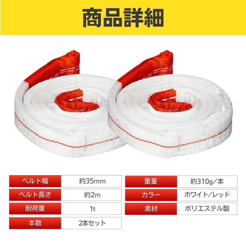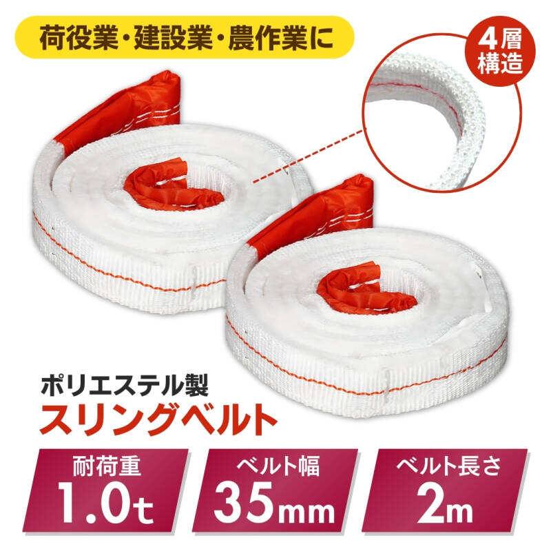 スリングベルト 2m 1t 長さ ナイロン ポリエステル 2本セット 耐荷重 1000kg 玉掛け 荷吊り 吊上げ 長さ 幅 ラッシング ロープ 牽引 帯 收藏