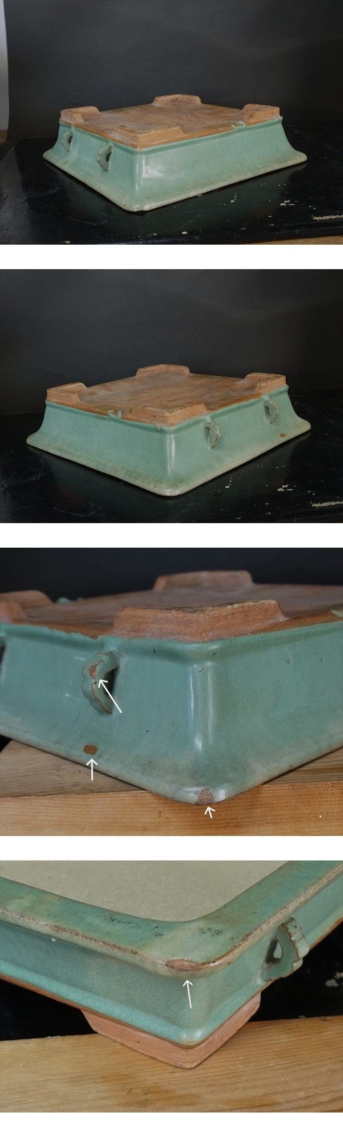 【盆栽鉢】 外縁正方水盤  《青交趾》  收藏