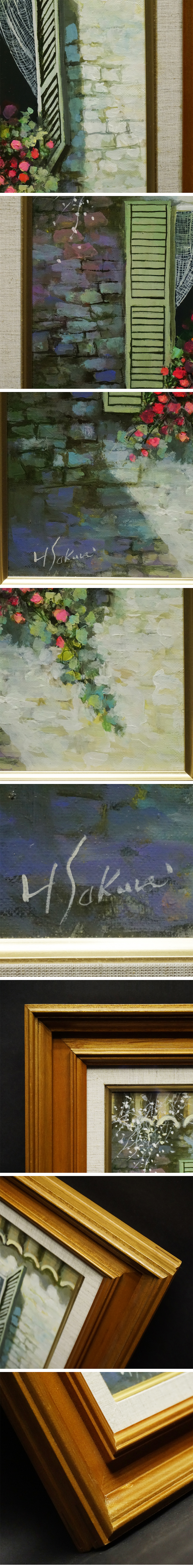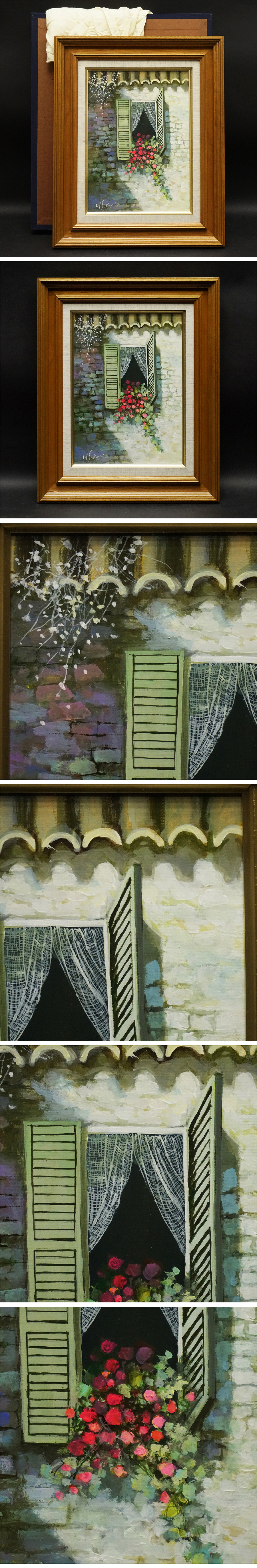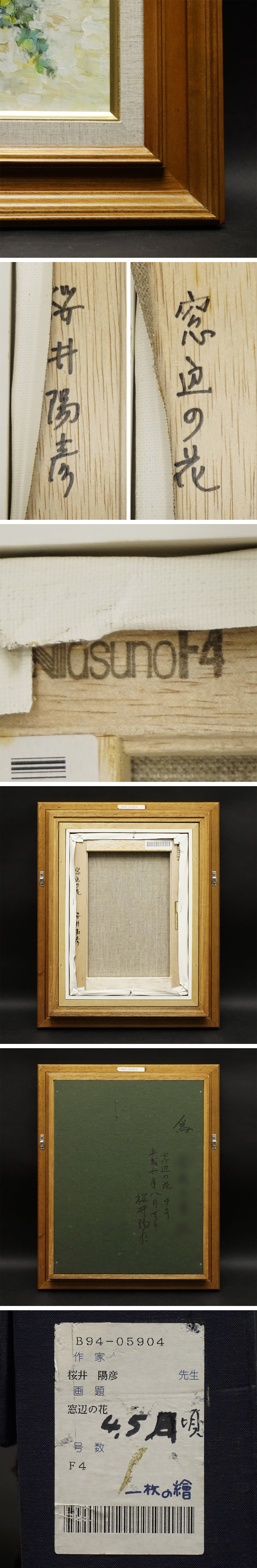 桜井陽彦『窓辺の花』4号 油彩 油絵 直筆 風景画 裏書サイン 絵画 額装 美術 芸術 アート 古美術品 真作保証品 收藏