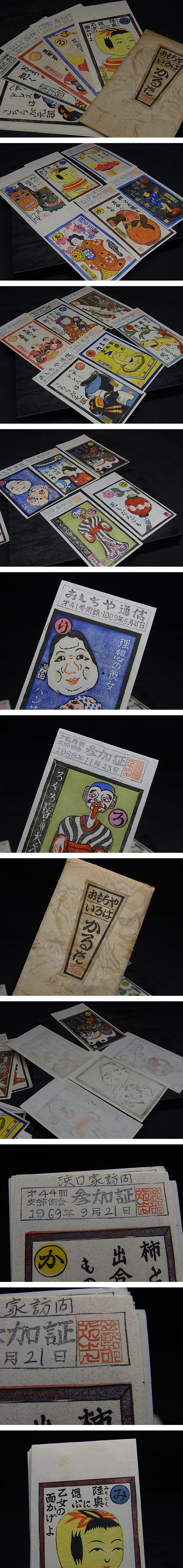 | d962 時代 おもちゃ通信 木版 おもちや いろはかるた 17種 木版画 カルタ タトウ 郷土玩具 玩具 こけし | |