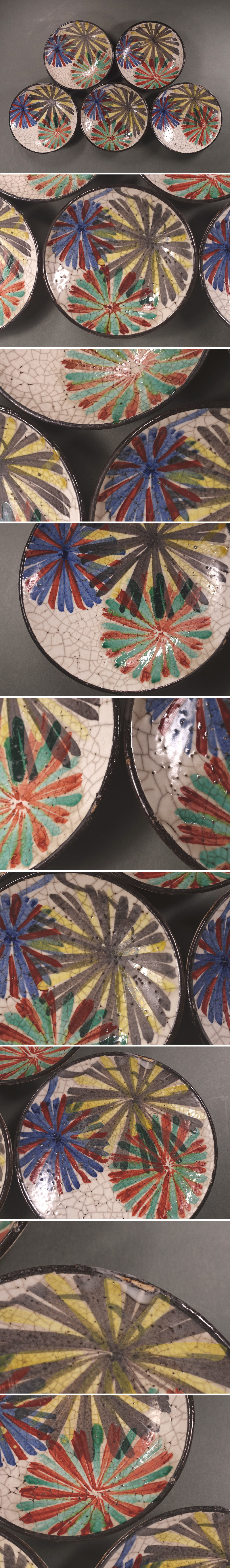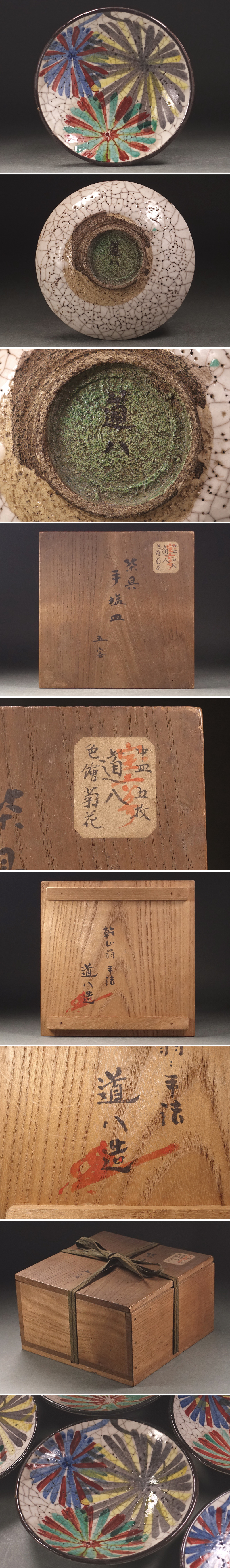 ∇花∇【高橋道八】作 尾形乾山敬慕 色絵菊花文手塩皿(小皿) 五客揃 共箱付 秀逸茶道具 收藏