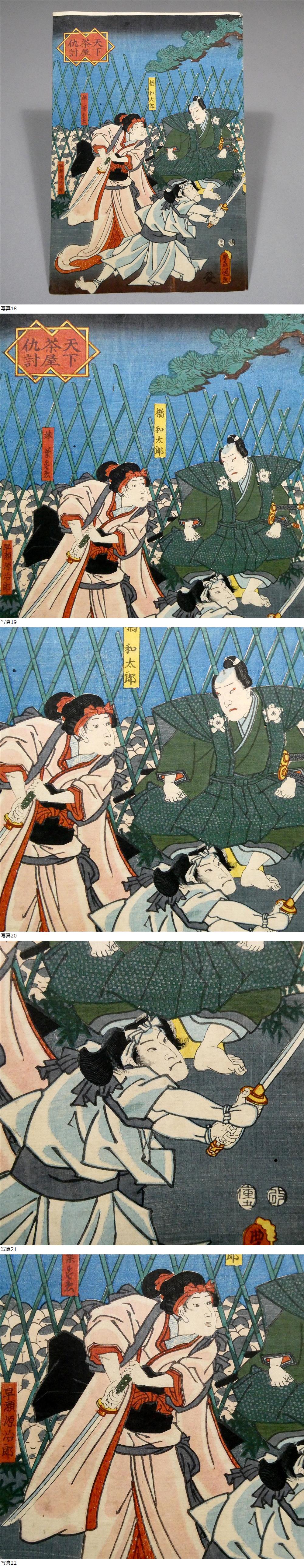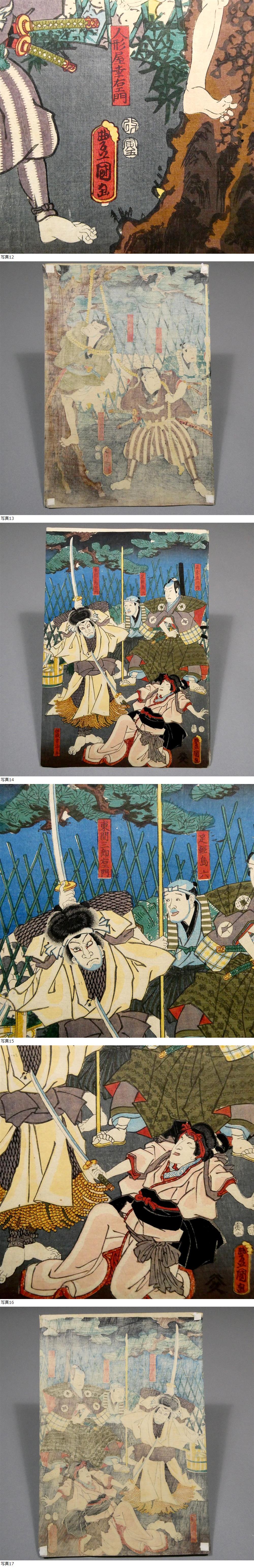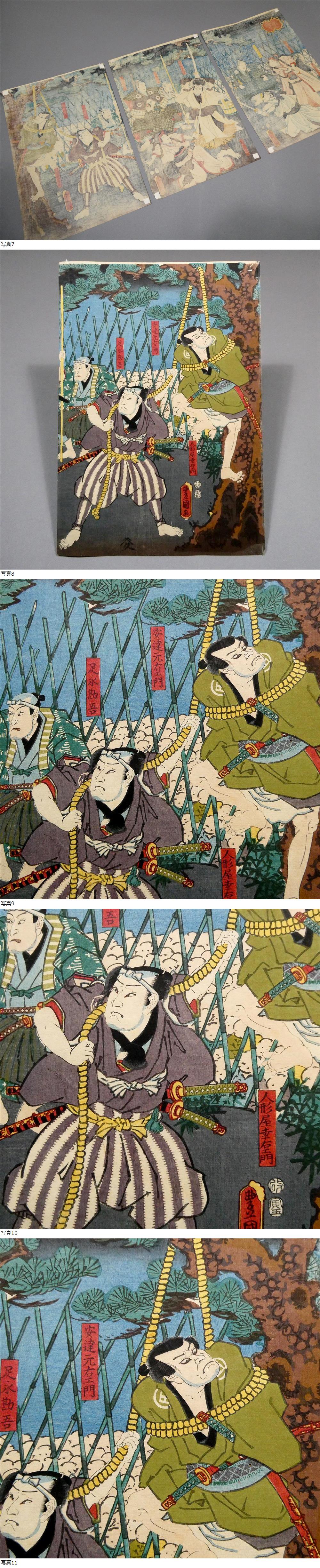 歌川国貞◆「天下茶屋仇討」3枚続揃い◆烈女仇討ち! 安達元右衛門 吊し上げ◆江戸時代 木版浮世絵■豊国三代 国芳 歌舞伎 芝居絵 錦絵 27 收藏