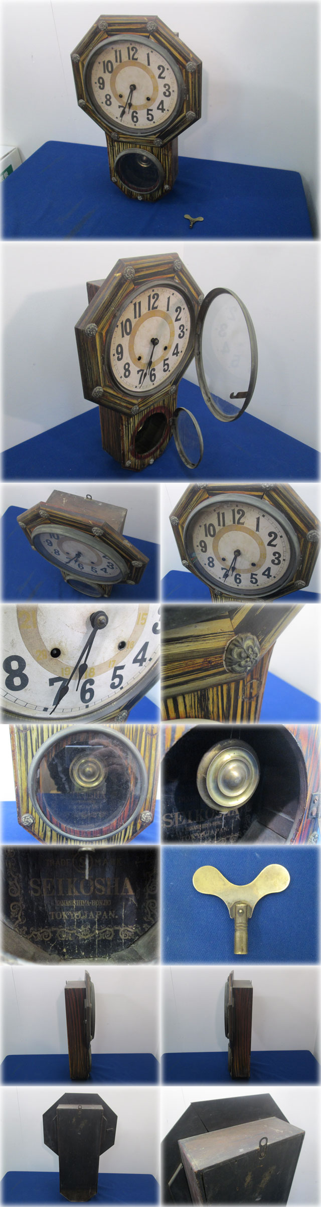 精工舎 ゼンマイ式掛時計 ヴィンテージ 八角型 アラビア数字 丸窓振り子室 明治~大正頃? 【長野発】 收藏