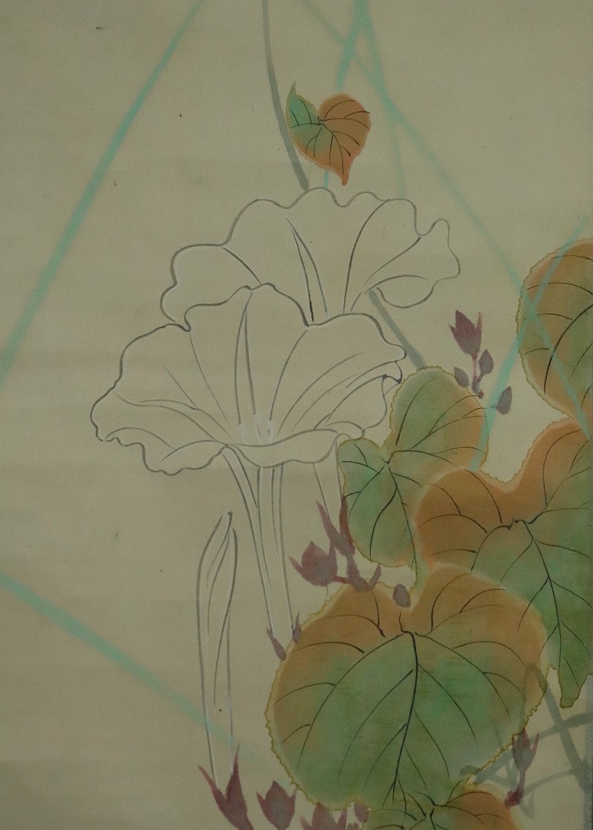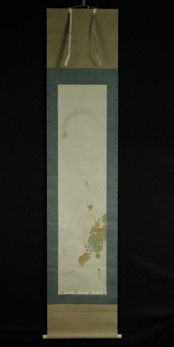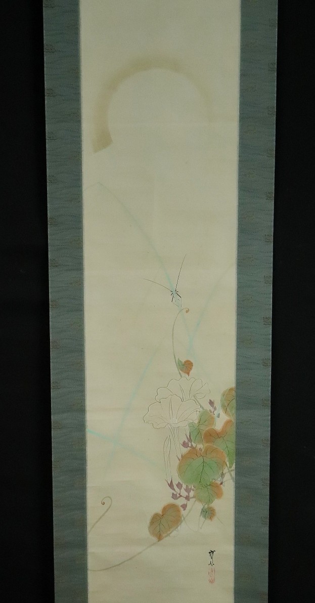 12988■【真作】木村武山 【収集家旧蔵品】 月下夕顔図 共箱 茨城の人 川端玉章師事 円山四条派 掛軸 收藏