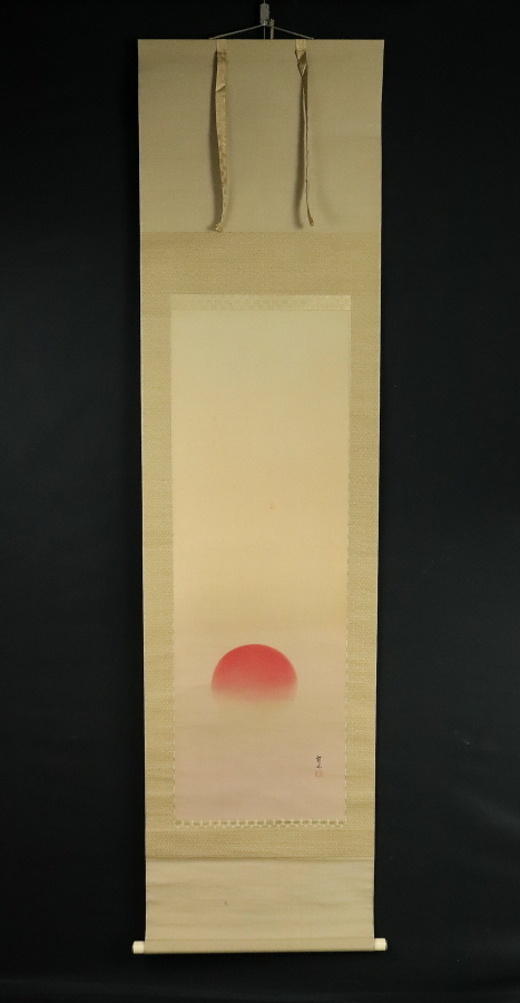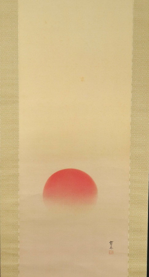 12994■【真作】木村武山 【収集家旧蔵品】 旭図 絹本 茨城の人 川端玉章師事 円山四条派 掛軸 收藏