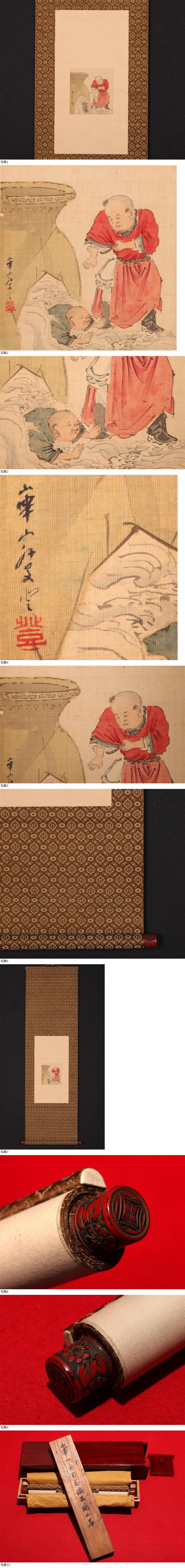 【無盡蔵】【模写】【渡辺崋山】【唐子】【中国物語】〈江戸時代後期の武士 文人画家 三河国田原藩士〉二重箱 渡辺崋石箱 堆朱軸先 絹本 收藏