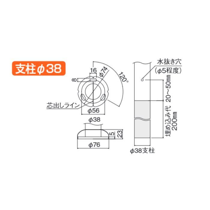 | サイズ | 支柱φ38mm 個装サイズ:7×9×103cm |