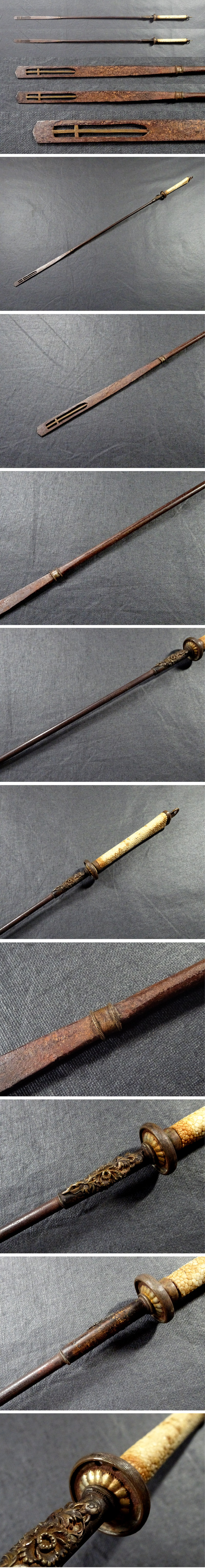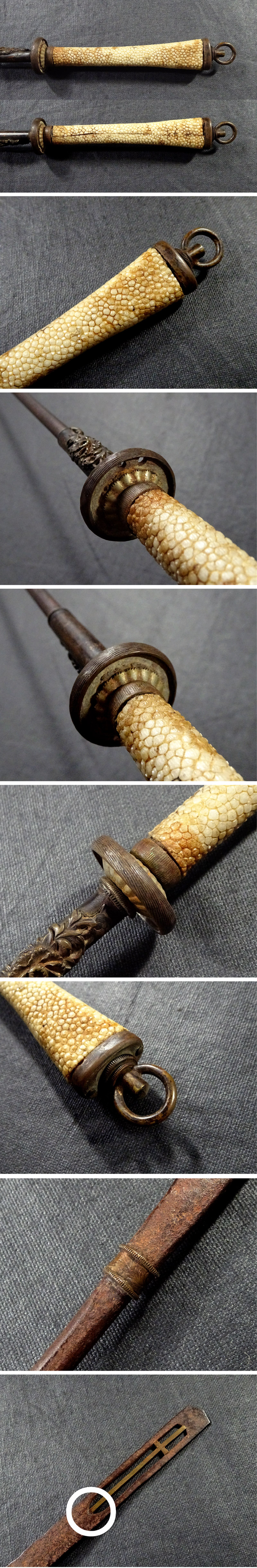 敬逢 名品 武具 馬具 江戸時代 鉄地 十字文装飾 鮫皮巻柄 せめわっぱ 鐔付 馬鞭 鉄鞭 銅地環 大珍品【検刀剣甲冑鎧兜鐙鞍 收藏