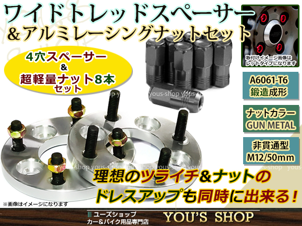 モビリオスパイク GK1/2 ワイド スペーサー 4H PCD100/65/M12 P1.5 15mm 2枚 レーシングナット M12 P1.5 非貫通型 灰 收藏