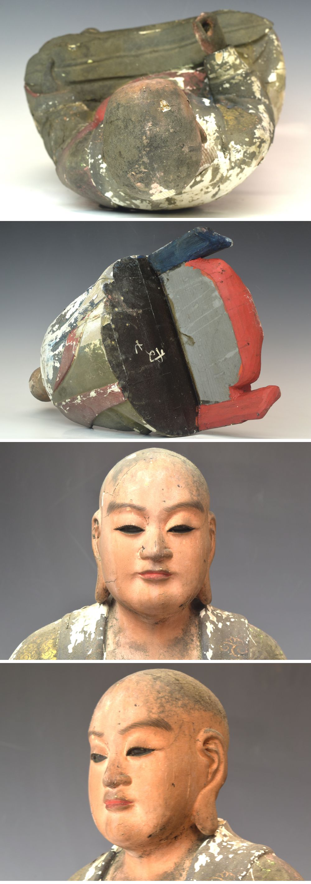 | 説明 | 時代のある木彫り彩色玉眼羅漢像です。 細部まで丁寧に彫刻、彩色が施されており時代を経た味わい深い羅漢像です。 良い表情をしており存在感があります。 経年に伴う擦り傷や汚れ、痛みや欠損等ありますので画像をご確認下さい。 今回、八体の羅漢像を同時出品しておりますので合わせて御覧下さい。(台は付属致しません) この機会をお見逃し無く! この他にも多数出品しておりますので宜しければご覧ください。 商品代金+消費税+送料の合計がお支払い代金となります。 |