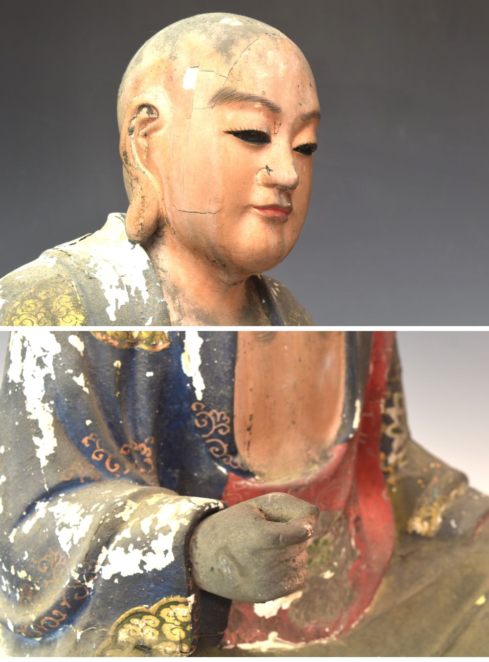 | 商品名 | 時代 木彫り彩色玉眼羅漢像 高さ41cm 八体同時出品 N2251【趣楽】 | ||