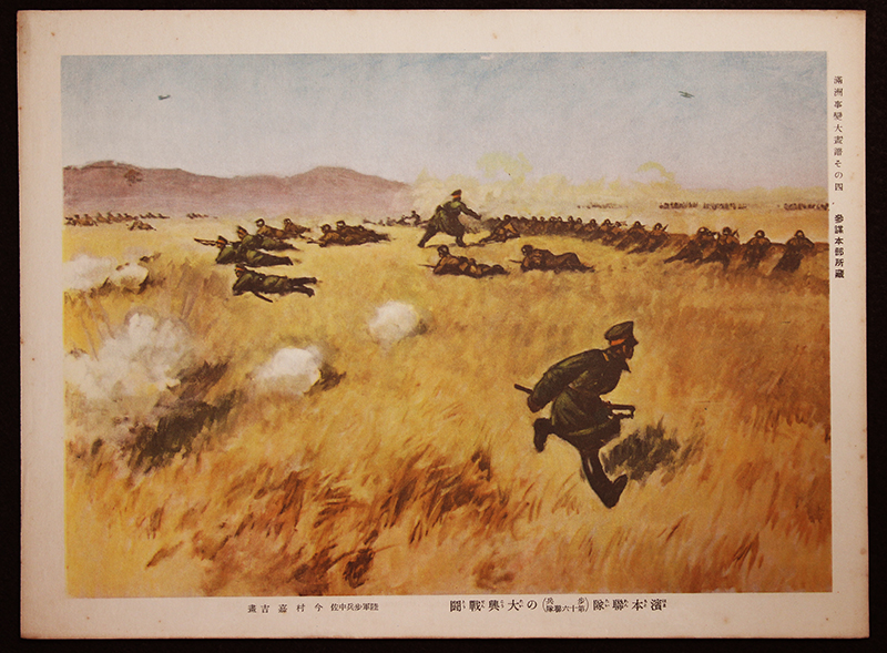 K0705-4-4 戦前 満州事変大画譜4 参謀本部所蔵 濱本連隊の大興戦闘 陸軍歩兵中佐 今村嘉吉画 大日本帝国 陸軍 海軍 收藏