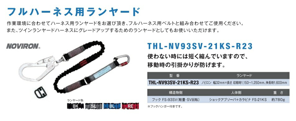 藤井電工 ノビロン THL-NV93SV-21KS-R23 ブラック フルハーネス用ランヤード 巻取式 ランヤード幅15mmx長さ1650mm NOVIRON 049415 。 收藏