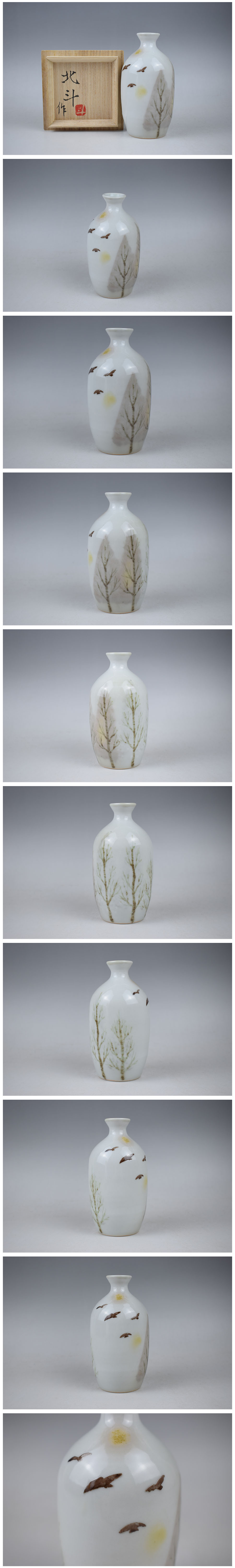 E71 伊藤北斗 色絵飛鳥図 徳利 酒器 共箱 真作保証 收藏