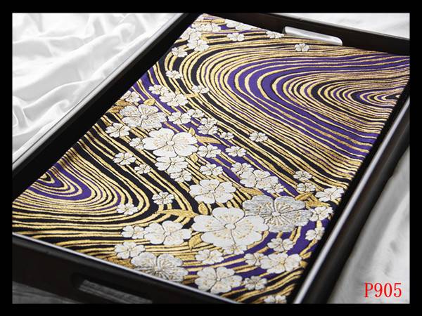 P905厳選西陣 振袖可 流水桜散らし紋 黒色地紺藍色 華やぎの品格 正絹純金糸六通高級美術袋帯 ◇検◇簪着物名古屋帯帯締め 收藏