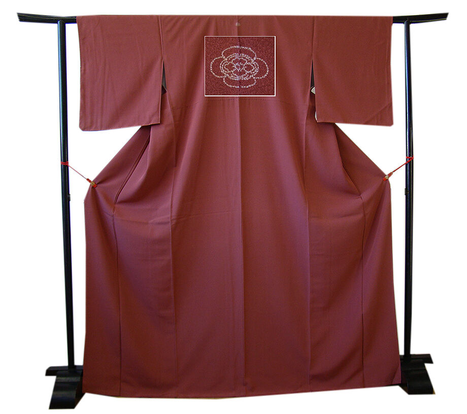 | 商品説明 | こちらのお品は「袷」ですので10月から5月までお召頂ければと思います。 しなやかで柔らかな手触りの着心地良い重めのちりめん地の生地は、 渋い紅鳶色地の色無地着尺、 八掛は共色(正絹)、背には「横木瓜」の刺繍紋1ヶ、幅広い年代の方にお召し頂けます。 |