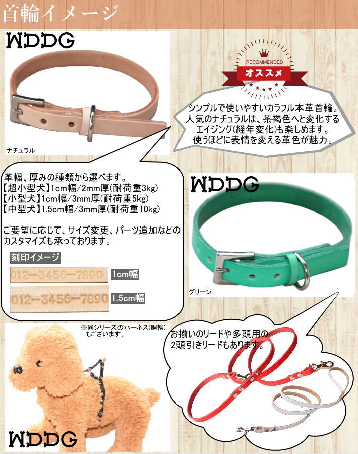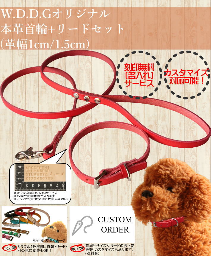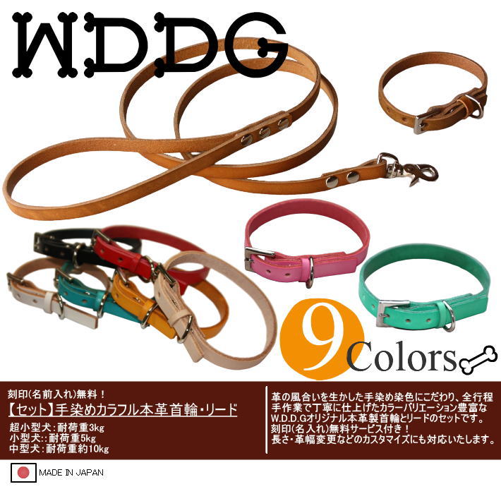犬 革 首輪 リードセット 名前入り 本革 カラフル リード 首輪セット 超小型 ~ 小型犬 犬首輪 迷子札 ドッグ レザー 牛革 日本製/ 收藏
