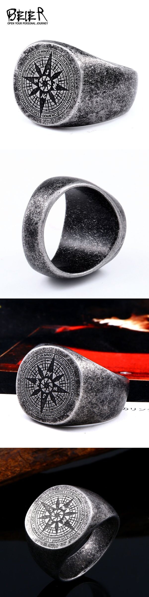 指輪 リング ステンレス ビンテージ コンパス ジュエリー 品質 アミュレット バイキング メンズ 316L ノヴィ オーディン タグ 私 O Y 收藏