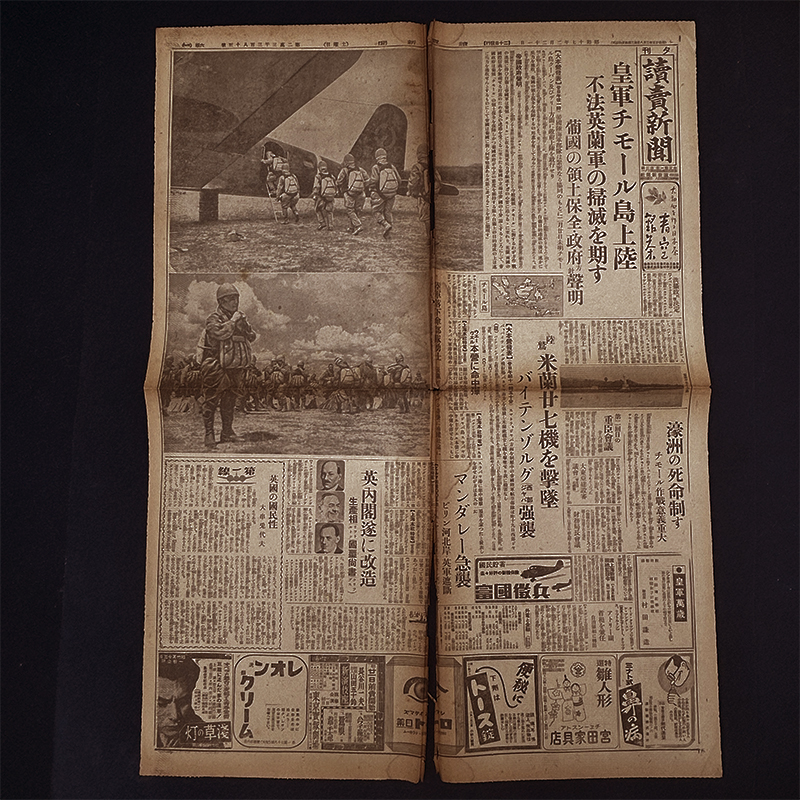 S0077 戦前 昭和17年2月21日 読売新聞 夕刊 大東亜戦争 大日本帝国 陸軍 海軍 皇軍チモール島上陸 不法英蘭軍の掃滅を期す 收藏