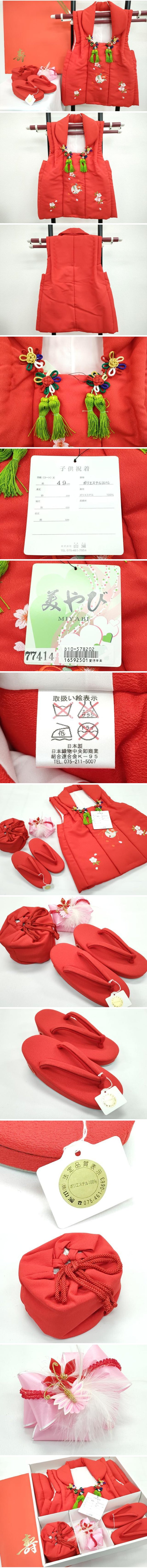 平和屋本店[]極上 七五三 女の子 3歳 被布・草履・巾着・髪飾りセット 4点セット 刺繍 鈴 草花文 金糸 逸品 新品 CZAA4723s6 收藏