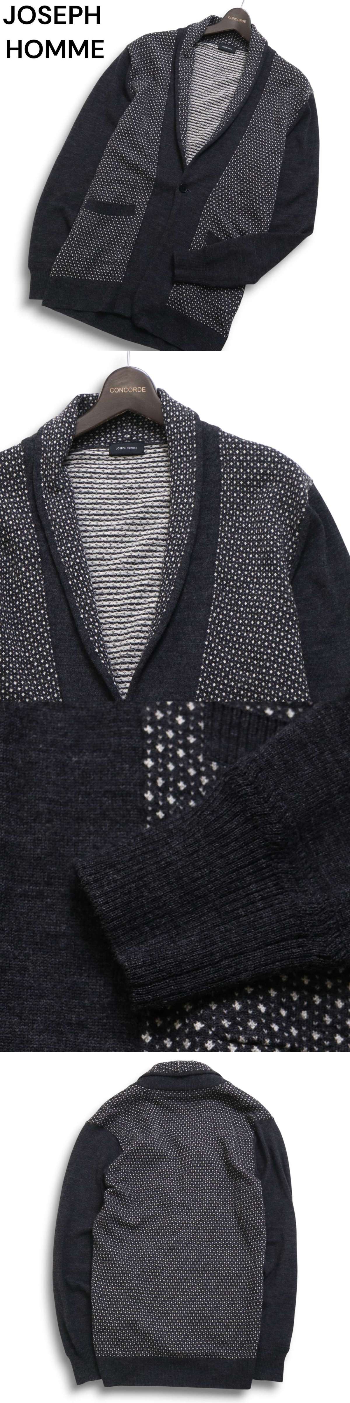 JOSEPH HOMME ジョセフ オム 秋冬 ウール100%★ ニット ドット調 ショールカラー カーディガン 羽織り Sz.48 メンズ グレー 收藏