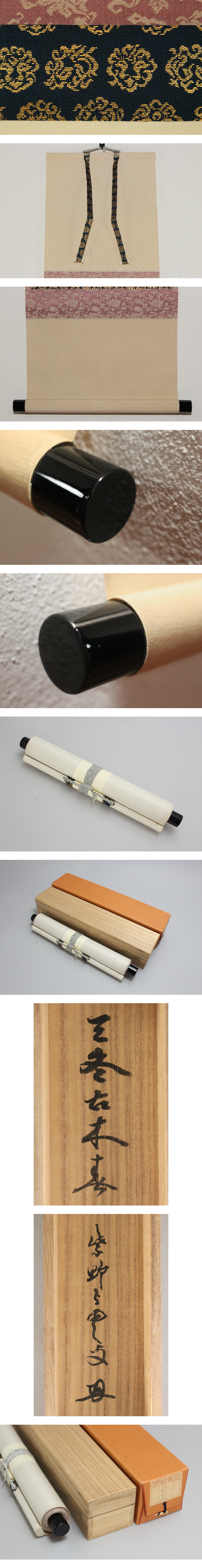 [175580]【真作】大徳寺派 芳春院 三重野与雲 一行書「三冬古木春」紙本 掛軸 共箱/畳箱◆書画/墨跡/茶掛/禅語/古美術/骨董/うぶ品