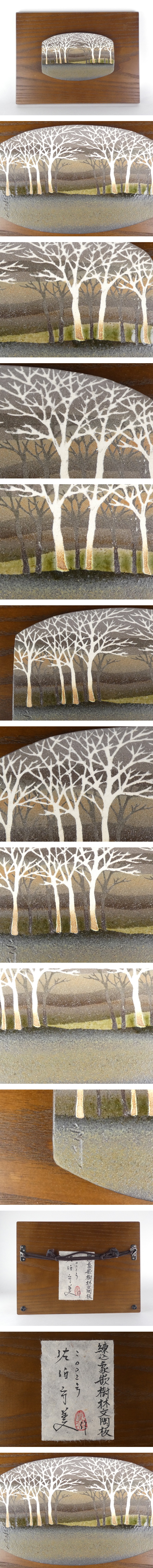 【都屋】佐伯守美「練込象嵌樹林文陶板」共シール 益子焼 R397 收藏