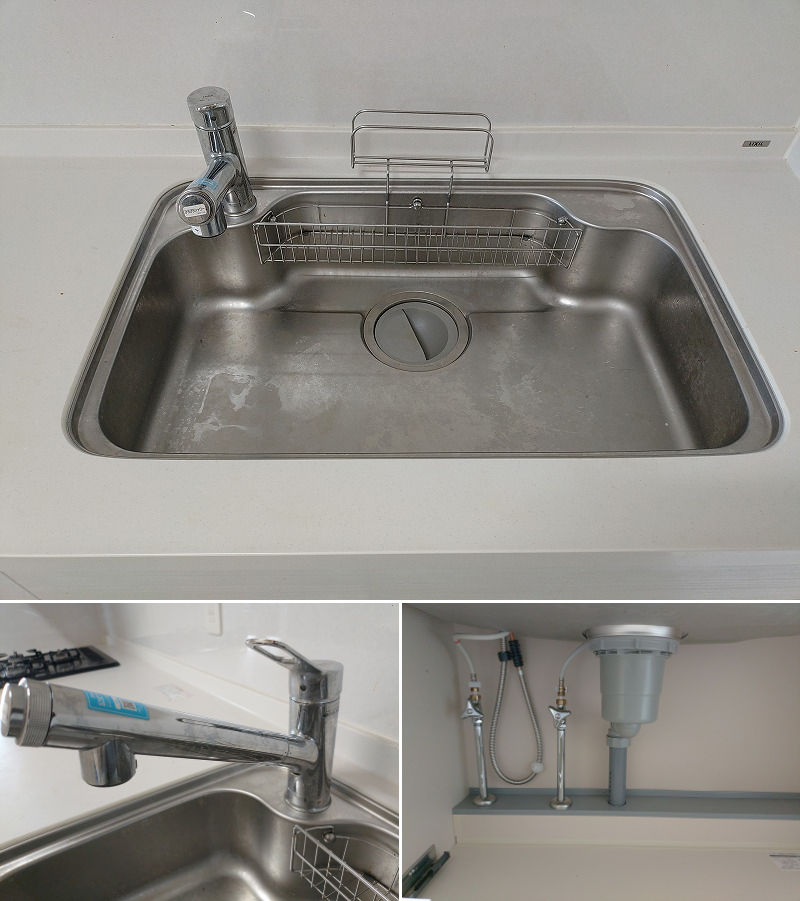 LOOP OUTLET STORE HP クリック!! LIXIL ■ W2610㎜ I型 システムキッチン+吊り収納棚 ガスコンロ・レンジフードなしの出品です。 ◆実使用されていた中古商品となります。 新品・展示品ではございませんので、傷や汚れなどは有るものとお考え下さい。 ◆システムキッチン◆ 【メーカー/品名】 LIXIL ガスコンロ・レンジフードは付属致しません。 【仕様】 I型タイプ 【サイズ】 システムキッチン:W2610×D650×H850(+60)mm 【人造大理石天板】 作業スペース870mm 【ステンレス製シンク】 シンク:W775×D480×H180mm 清掃済みですが、シンク内にスリキズ、取れない汚れ等ございます。 写真にてご確認の程宜しくお願い致します。 【引出し収納】 ソフトクロージング仕様 【付属品】 吊り収納棚/LED手元照明付(W1715×D370×H700) レンジフード前幕板パネル(W900×H660)※金物なし 止水栓×2個 洗剤ラック タオルクリップ 組立ビス 【浄水器内蔵型シングルレバー混合水栓】 メーカー:LIXIL 品番:JF-AK461SYX-JG5Z 【備考】 新品浄水カートリッジ付属 |
