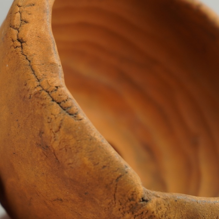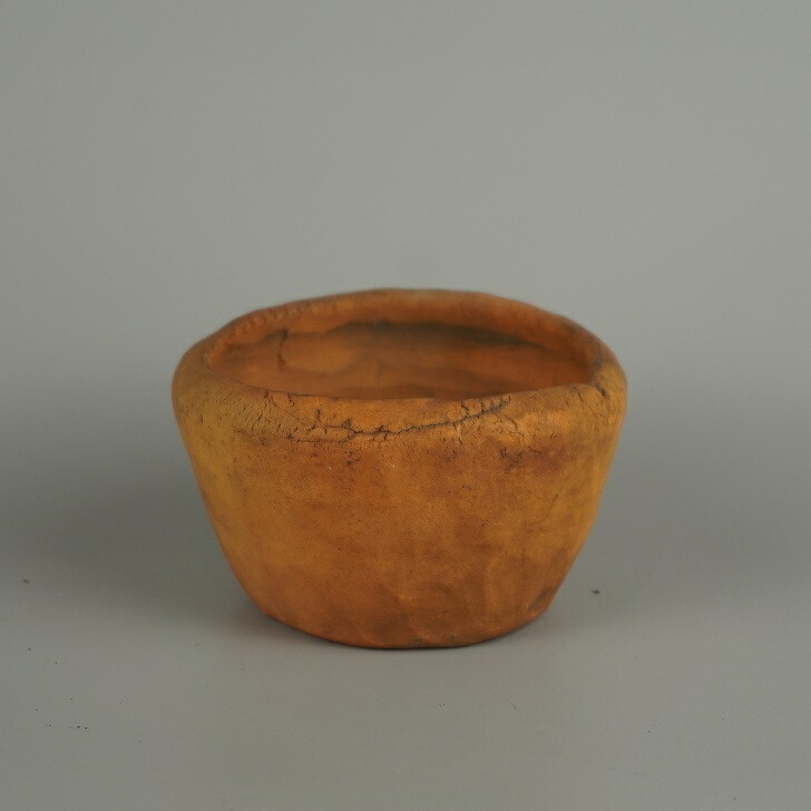 【中古】盆栽鉢 落款なし 小鉢 長辺 約 9.2cm 丸鉢 泥物 和鉢 現品 中古鉢 收藏