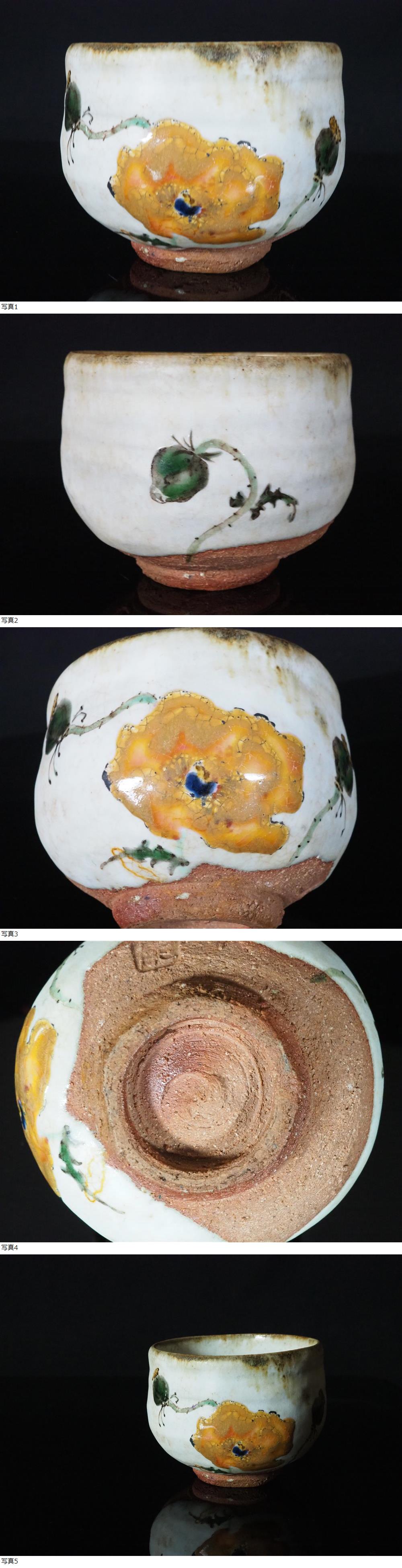 【GK】人間国宝 藤本能道 色絵花文茶碗 茶道具 識箱 無傷 本物保証! 收藏