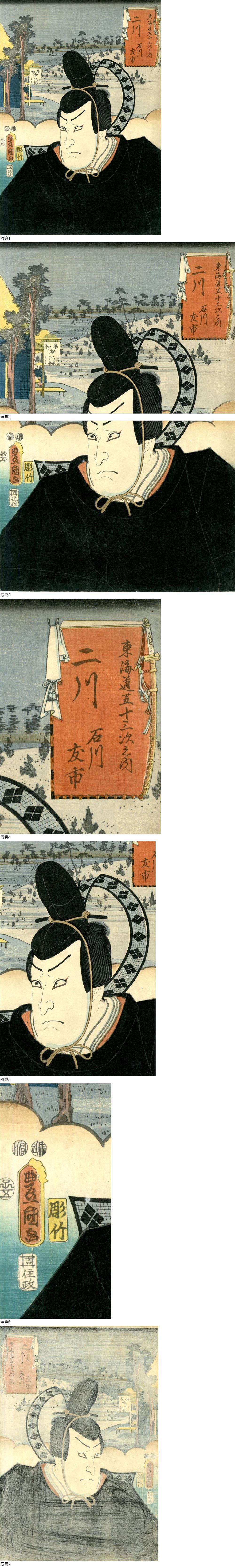 | 豊国 真作 「役者見立東海道五十三驛 二川 石川友市/大判錦絵」 浮世絵 江戸 木版画 |