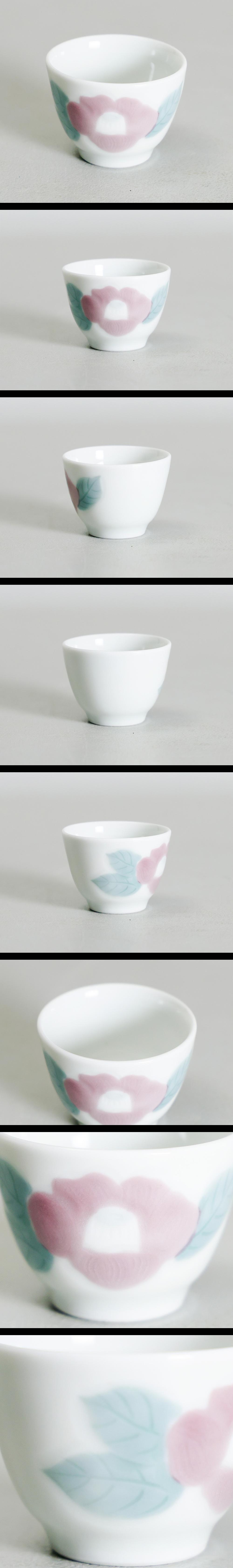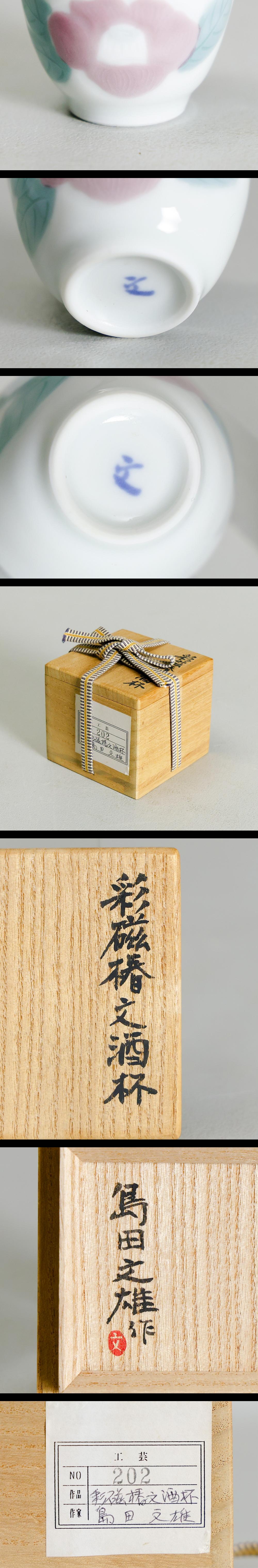 【真作】【WISH】島田文雄「彩磁椿文 酒杯」彩磁 共箱 高さ4㎝ 〇東京藝術大学名誉教授 日本工芸会正会員 師:能道・耕一・陽 #26026015 收藏