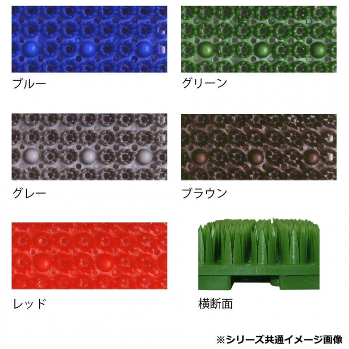 | 仕様 | 用途:学校、ビル、オフィス、銀行、店舗、複合施設等の出入口部 防炎試験登録番号:EO850210 4辺スロープフチ付き 透水タイプ |