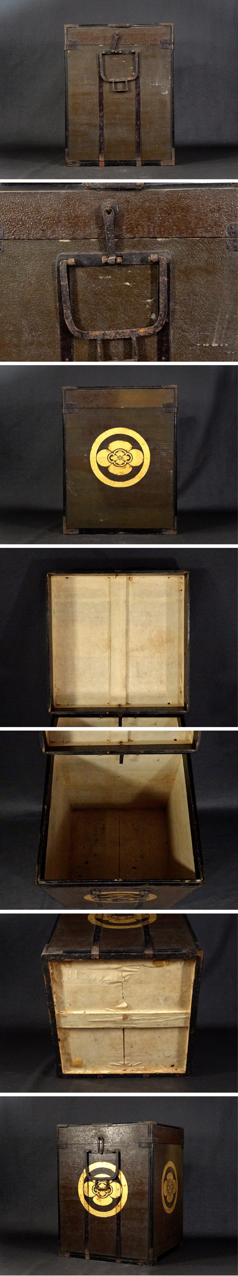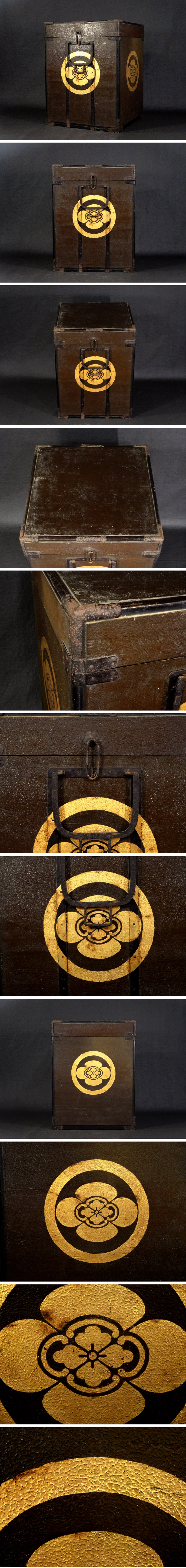 敬逢 秀逸 武具 江戸時代 木地本漆塗 本金彩 丸に木瓜紋入 厚手鉄地金具 鎧櫃 挟箱 【検 甲冑鎧兜馬具大名刀剣火縄銃 收藏
