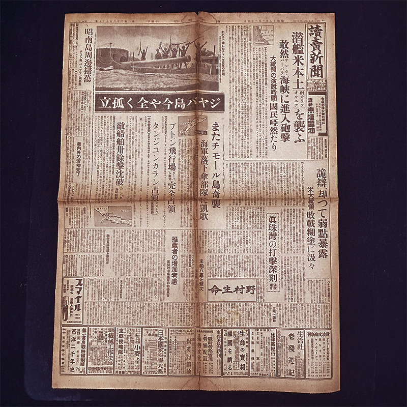 S0083 戦前 昭和17年2月25日 読売新聞 朝刊 大東亜戦争 大日本帝国 陸軍 海軍 潜艦米本土を襲う 敢然サンタバーバラ海峡に進入砲撃 收藏