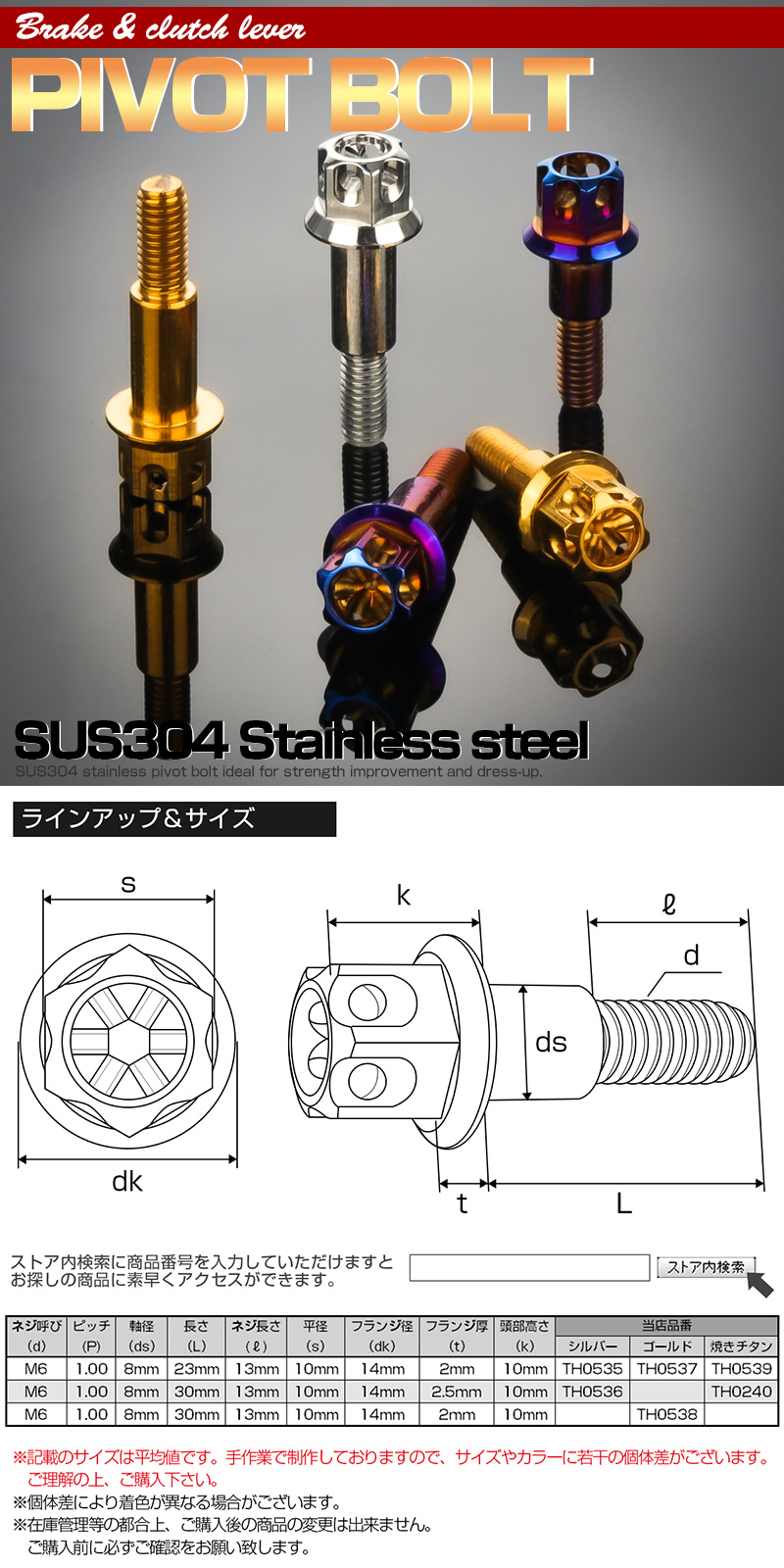 | ■ SUS304 ピボットボルト | ■ 商品内容 | |