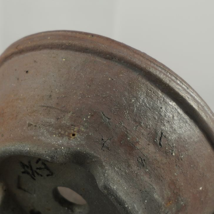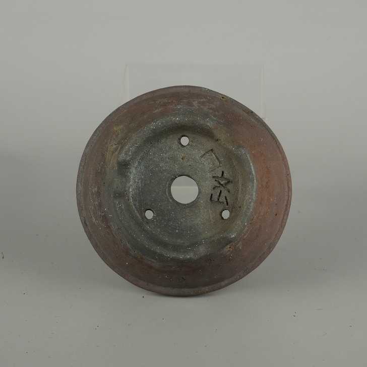 盆栽鉢 文山 越前文山 小型 長辺 約 12.3cm 鯖江園芸 丸鉢 縁付 泥物 現品 收藏